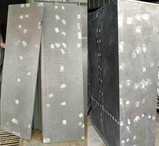 如圖是浦豐柜業(yè)焊接的重型工具柜表面處理過程中的照片。有白點(diǎn)的地方都是厚板焊透后人工打磨凸起的鋼板表面。只有工具柜內(nèi)加強(qiáng)筋和柜體焊透才能保證固體的牢固性。每個(gè)焊點(diǎn)再采取汽車表面修補(bǔ)漆面的工藝,進(jìn)行人工修補(bǔ)原子灰,再進(jìn)行表面靜電噴塑處理。