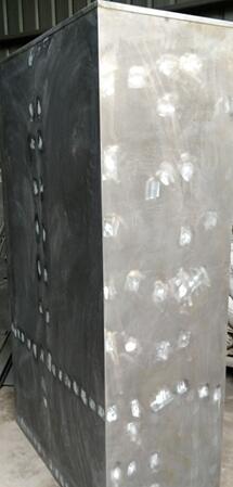 如圖是浦豐柜業(yè)焊接的重型工具柜表面處理過(guò)程中的照片。有白點(diǎn)的地方都是厚板焊透后人工打磨凸起的鋼板表面。只有工具柜內(nèi)加強(qiáng)筋和柜體焊透才能保證固體的牢固性。每個(gè)焊點(diǎn)再采取汽車表面修補(bǔ)漆面的工藝,進(jìn)行人工修補(bǔ)原子灰,再進(jìn)行表面靜電噴塑處理。